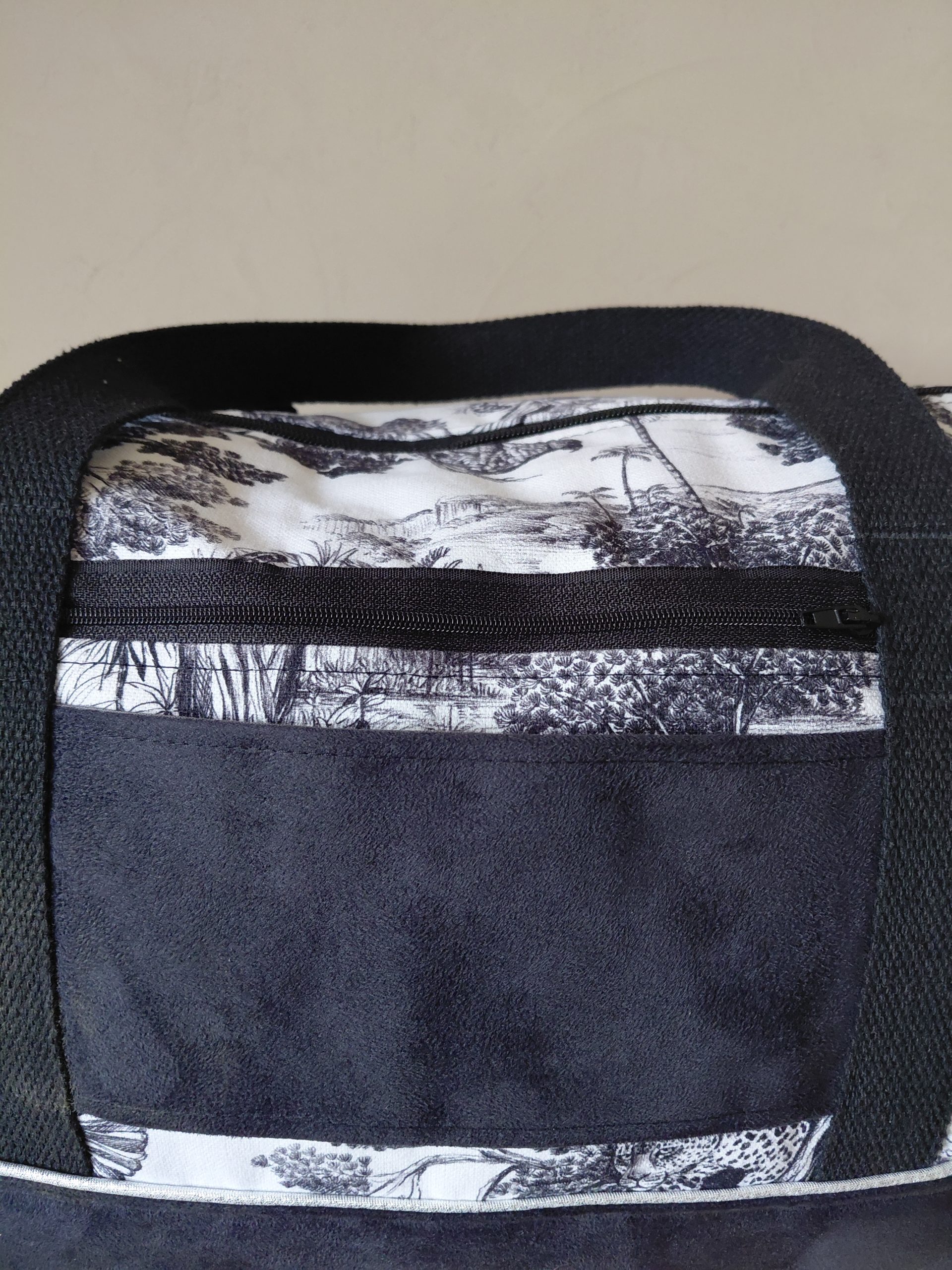Confectionné en coton imprimé et renforcé par une base en suédine, il offre un format cabine idéal, des poches fonctionnelles et une allure raffinée pour toutes vos escapades.